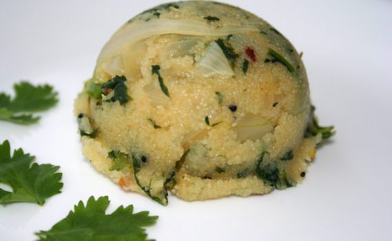 A traditional south indian breakfast dish made from semolina or vermicelli. Upma is served with coconut chutney or lime pickle. It can also be had plain. Ingredients: 1 cup roasted semolina/vermicelli 1 medium sized onion (chopped finely) 1 green chilli (chopped) 1 tbsp chana dal/spilt and skinned bengal gram ½ […]